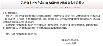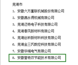 2018年8月29日,安徽省經(jīng)信委通過官網(wǎng)發(fā)布——2018年度安徽省成長型小微企業(yè)認定名單,我公司安徽譽特雙節(jié)能技術有限公司喜獲認定,為蕪湖市僅有的八家上榜企業(yè)之一,也是蕪湖國家級經(jīng)濟技術開發(fā)區(qū)和蕪湖高新技術創(chuàng)業(yè)園區(qū)唯一的入選企業(yè),含金量頗高。